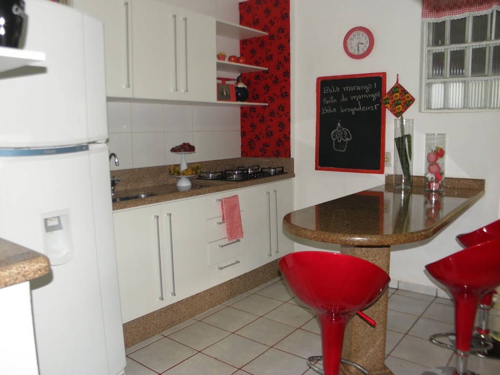 Amei a cozinha, como ficou linda toda branquinha com detalhes vermelhos.